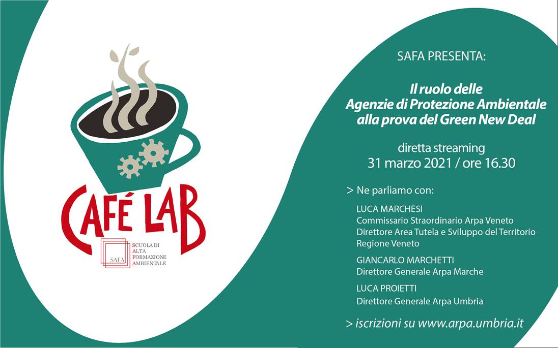 Il 31 marzo alle 16,30 appuntamento in diretta streaming con la prima puntata di CafèLab, il nuovo format culturale promosso dalla SAFA (Scuola di Alta Formazione di Arpa Umbria) che ha l’obiettivo di creare uno spazio di confronto sui temi dell’ambiente, della sostenibilità e dell’economia circolare.
